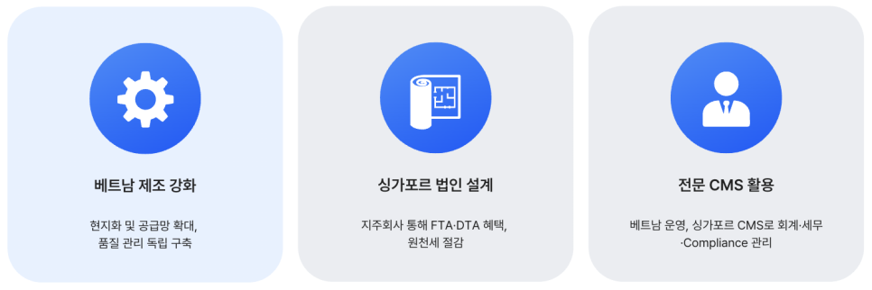 4. 전략적 대안: “베트남 제조 + 싱가포르 관리” 구조의 구체적 활용