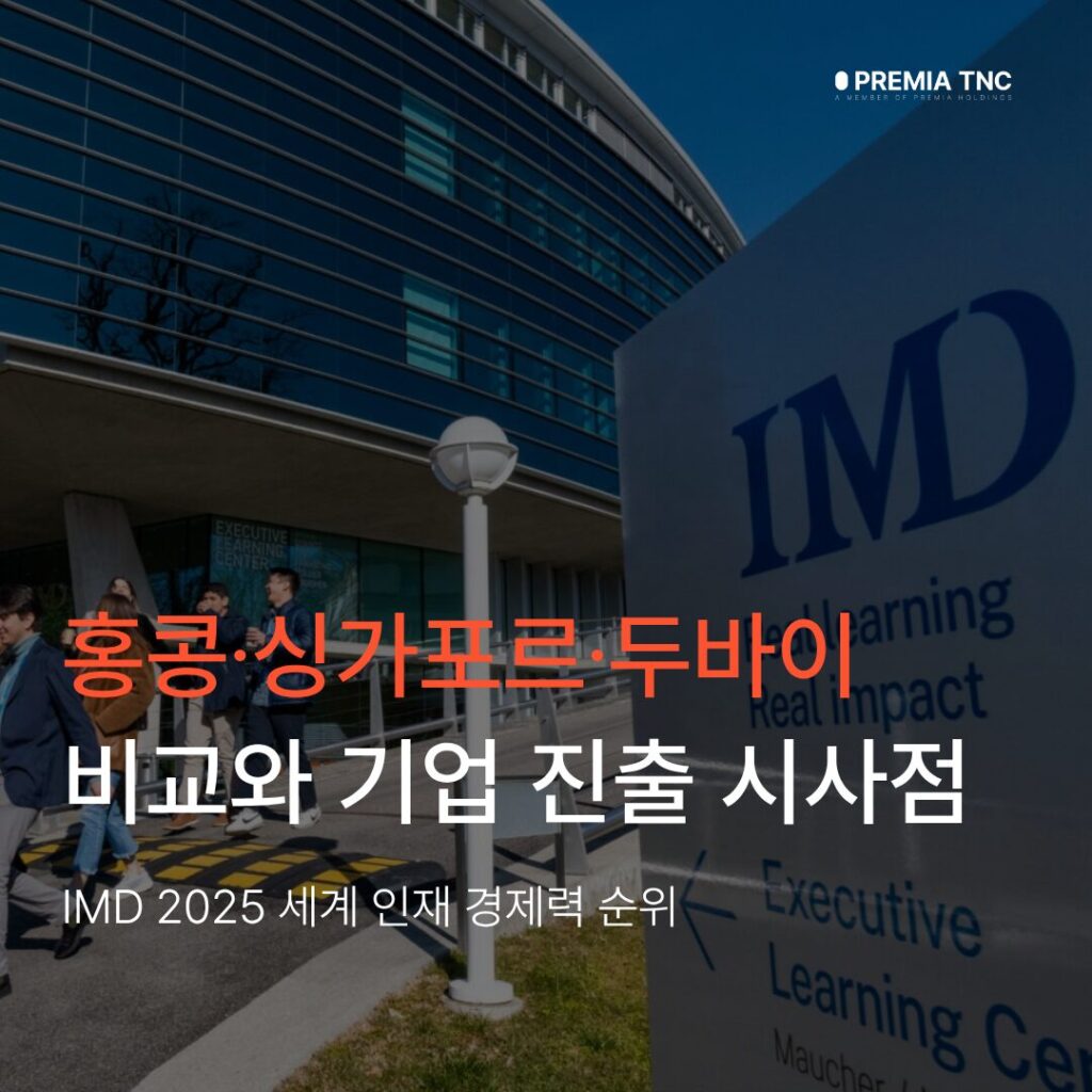 IMD가 발표한 2025 세계 인재 경쟁력 순위에서 홍콩은 4위, 싱가포르는 7위, 두바이는 9위권에 올랐습니다. 프레미아 티엔씨(Premia TNC)가 각 지역의 강점과 약점을 분석하고, 기업 진출 시 고려해야 할 전략적 인사이트를 제공합니다.